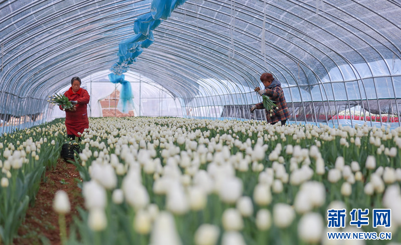 人勤春來早。春節過后,江蘇句容白兔鎮精心培育的20萬株郁金香陸續迎來花期。當地通過網絡直播的方式,將鮮切花銷往全國各地,在滿足居民“把春天搬回家”美好愿望的同時,也帶火了當地的“花經濟”。