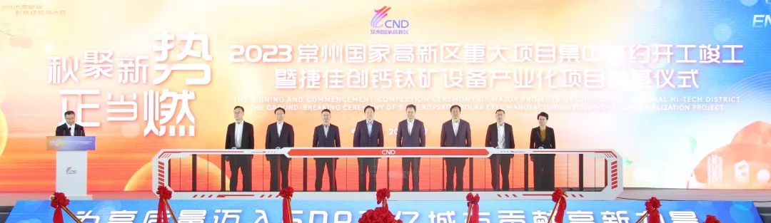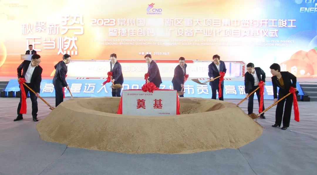 以重大項目建設熱潮扛起新能源之都核心區建設最強擔當。2023年10月7日上午,2023常州國家高新區重大項目集中簽約開工竣工暨捷佳創鈣鈦礦設備產業化項目奠基儀式舉行,115個重大項目集中簽約、開工、竣工。市委書記陳金虎見證簽約、啟動開工,并為捷佳創鈣鈦礦設備產業化項目培土奠基。