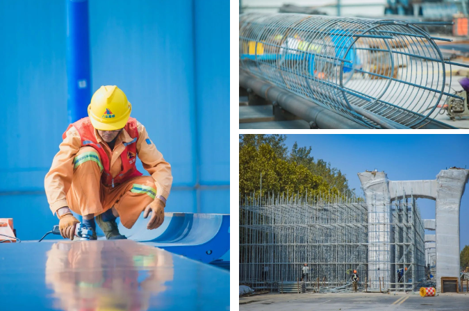 當前是項目建設的起步期?,F場伴隨機器的轟鳴聲,工人們正在各自崗位上進行作業,起重、焊接、承臺等施工有條不紊,多個工點同步推進,開啟龍江路高架北延項目施工“加速度”。