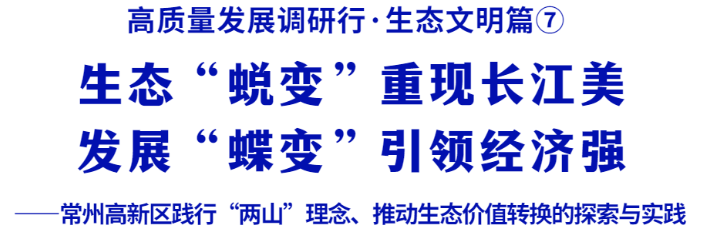 作為全市唯一臨江板塊,近年來,常州高新區深刻領會推動經濟社會發展和生態環境保護相輔相成、比翼齊飛的重大內涵,打通生態價值與經濟價值轉換渠道,努力重現綠水青山、做大金山銀山,實現生態“蛻變”、發展“蝶變”。
