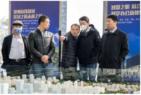 步入常州高鐵新城地標建筑——高新廣場,在一樓大廳的高鐵新城核心區沙盤前,商會嘉賓們看規劃、聽解說、論發展,對高鐵新城核心區內各重點項目的建設情況有了全面的了解,對區域未來發展美好前景更充滿信心。