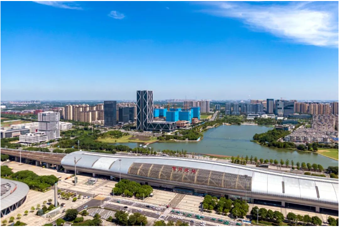 位于高鐵新城城市中軸和生態綠軸的交匯處,主要功能定位為金融商務中心、區域總部中心,用地面積約1.46平方公里,綠色建筑年節能量為700.3萬kW·h,項目還獲評由住建部官網公布的“2023年中國人居環境獎”,江蘇省僅有三個項目上榜。