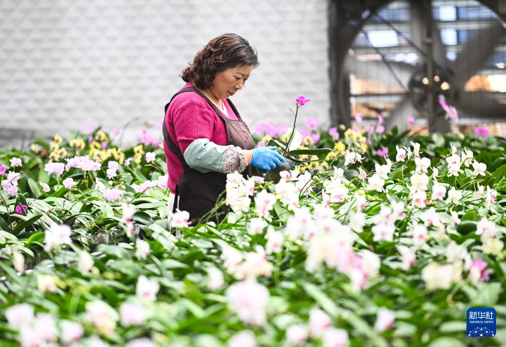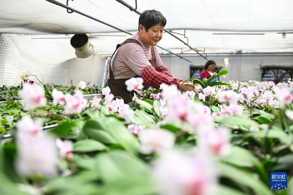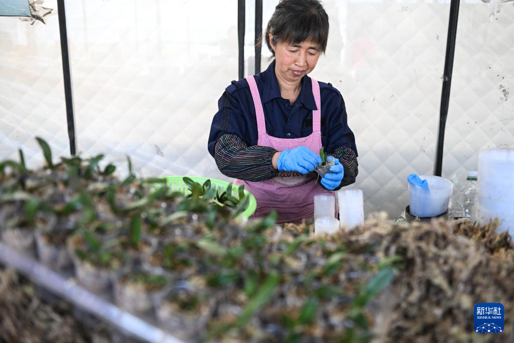 3月30日,村民在嶂山村蝴蝶蘭基地管護花卉。