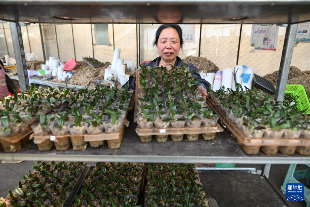 3月30日,村民在嶂山村蝴蝶蘭基地種苗。