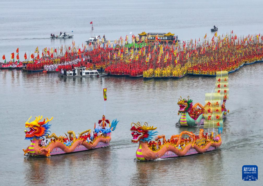 4月6日,參加會船表演的船只等待出發(無人機照片)。