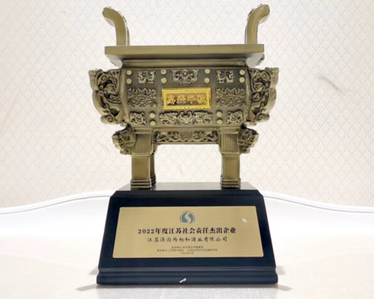 大會以“全力以‘復’,‘蘇’寫新篇”為主題,聚焦蘇商群體,盤點蘇商企業2022年在推進高質量發展、踐行社會責任等方面的成就?!敖K社會責任杰出企業”面向全社會公開評選積極踐行社會責任、熱心公益事業、為所屬行業經濟發展作出重大貢獻的江蘇企業,近60家企業申報。本次獲評“2022年度江蘇社會責任杰出企業”獎項是社會各界對湯溝酒業的認可與肯定。