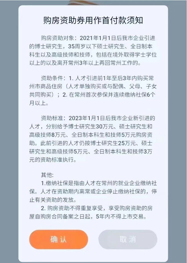 人才單獨購買或與配偶、父母、子女共同購買常州市新建商品房,均可使用購房資助券,購房資助券金額納入首付比例內。(注意:只能購買住宅,公寓和商鋪申請不了補貼)