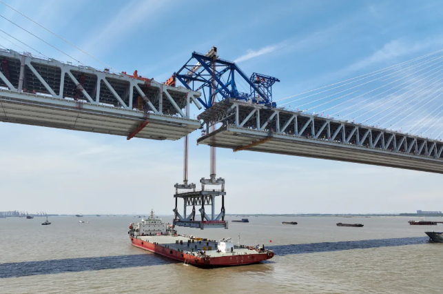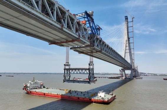 至此,歷時近16個月的連續施工,這座世界最大跨度斜拉橋的鋼桁梁吊裝全部完成。合龍段吊裝完成后,還將開展10天左右的后續施工,預計在6月上旬,常泰長江大橋合龍,實現全橋貫通。
