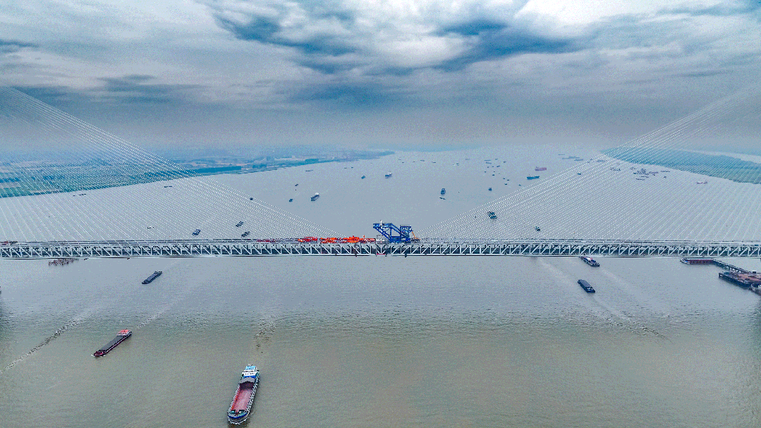 以此次主航道橋合龍施工為例,工序復雜、施工難度大、精度要求高。想要高質量“縫合”,把合龍精度控制在毫米級別,需要練就“繡花”功夫。建設團隊利用主梁縱移調整合龍口間距,通過調整索力消除合龍口高差,配合橋面臨時荷載移動等方法,使合龍口兩側鋼桁梁高程、轉角保持一致,最終實現合龍口連接栓孔的高精度對位,最大的偏差僅2毫米。