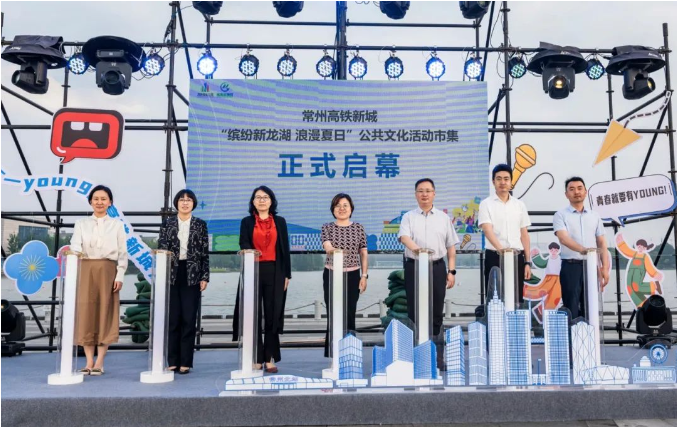 現場,常州高鐵新城“繽紛新龍湖”公共文化活動市集正式啟幕。依托新龍湖公園300畝水域面積,市集將通過整合各方資源,實現“跨界”聯動,共享文化資源,在這里,可以憑欄觀湖、劃槳游水,也可以逛市集商場,享煙火美食,進一步推動區域公共文化服務互聯互通、共建共享,不斷提升高鐵新城的經濟活力和人文魅力。