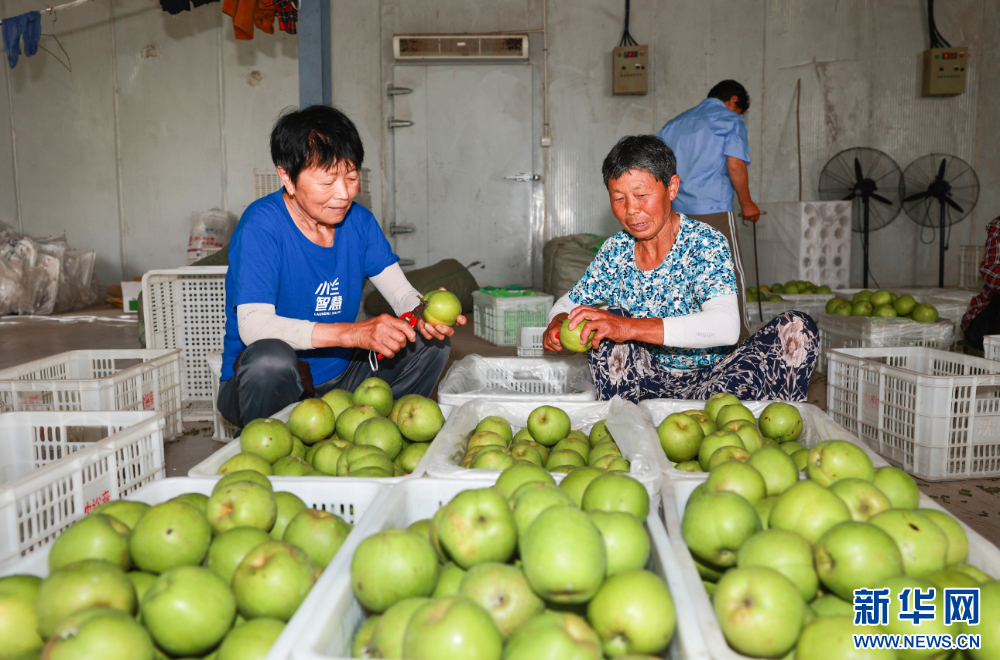 在江蘇省泰興市倩倩果樹種植園,梨農在分揀早熟梨。
