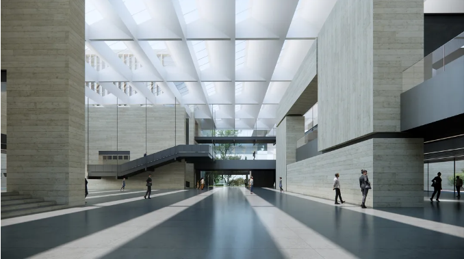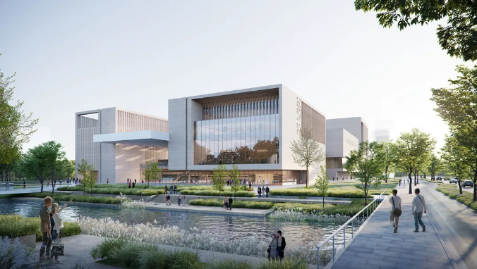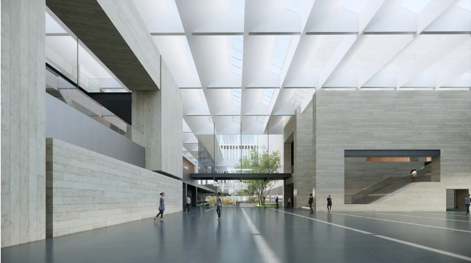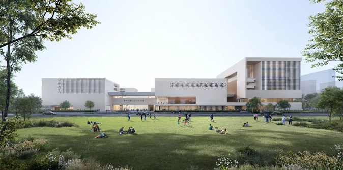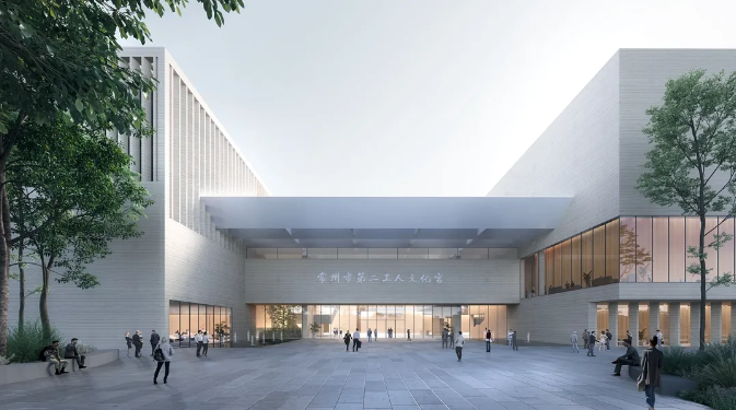 常州市第二工人文化宮的項目設計根據功能需求劃分群落體塊,呼應常州傳統民居的肌理,建筑形象面向高鐵新城城市主干道,形成圖、演、展、藝、體五館群落,以更好滿足職工精神文化陣地為基本需求,結合工人“樸實力量感”和文化“多元開放性”,打造成為具有樸實的工人特性并兼富有人文氣息的工人文化宮。