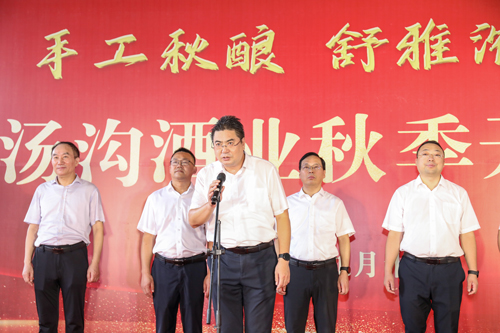湯溝酒業總經理鄭軍在致辭中表示,通過開窖儀式的舉辦,將湯溝酒釀造技藝發揚光大,擦亮湯溝酒金字招牌,將湯溝品牌提升到新的高度。