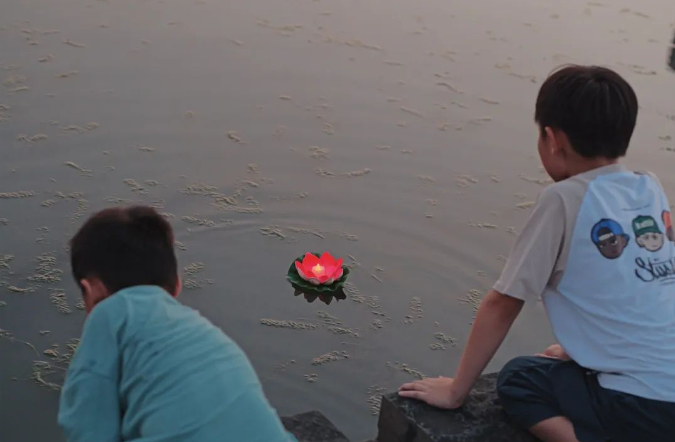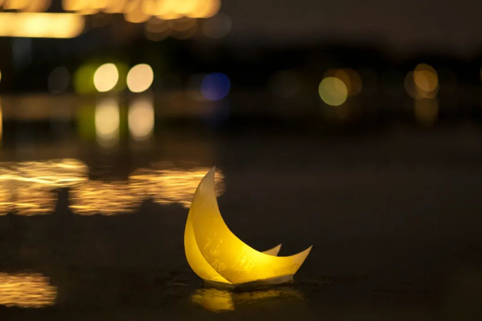 當巨大的“月亮兔”燈點亮湖畔夜晚