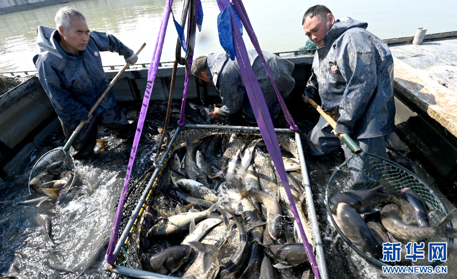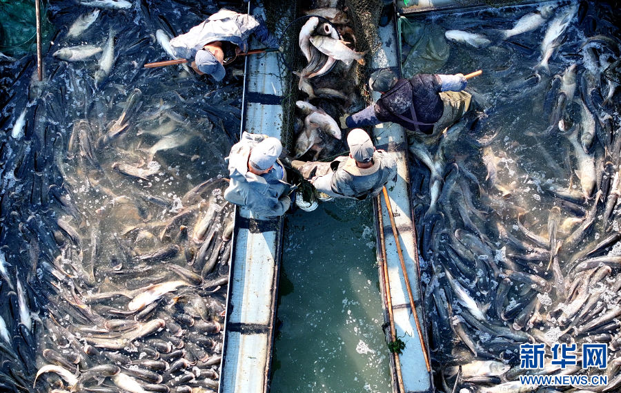 深秋,太陽躍出湖面時,看著從自家9個生態凈水網箱里捕撈的“胖頭魚”(鳙魚)已盡數上岸,駱馬湖洋河灘漁民劉裕東的臉上寫滿了豐收的喜悅。這是一年一度的“水上秋收”,這是期盼了一整年的幸福時刻,這是“人放天養”的駱馬湖鳙魚在2024年的首度破網上市,是駱馬湖生態富民“紅利”的又一次成功釋放。(崔雯雯 楊群 高凱)