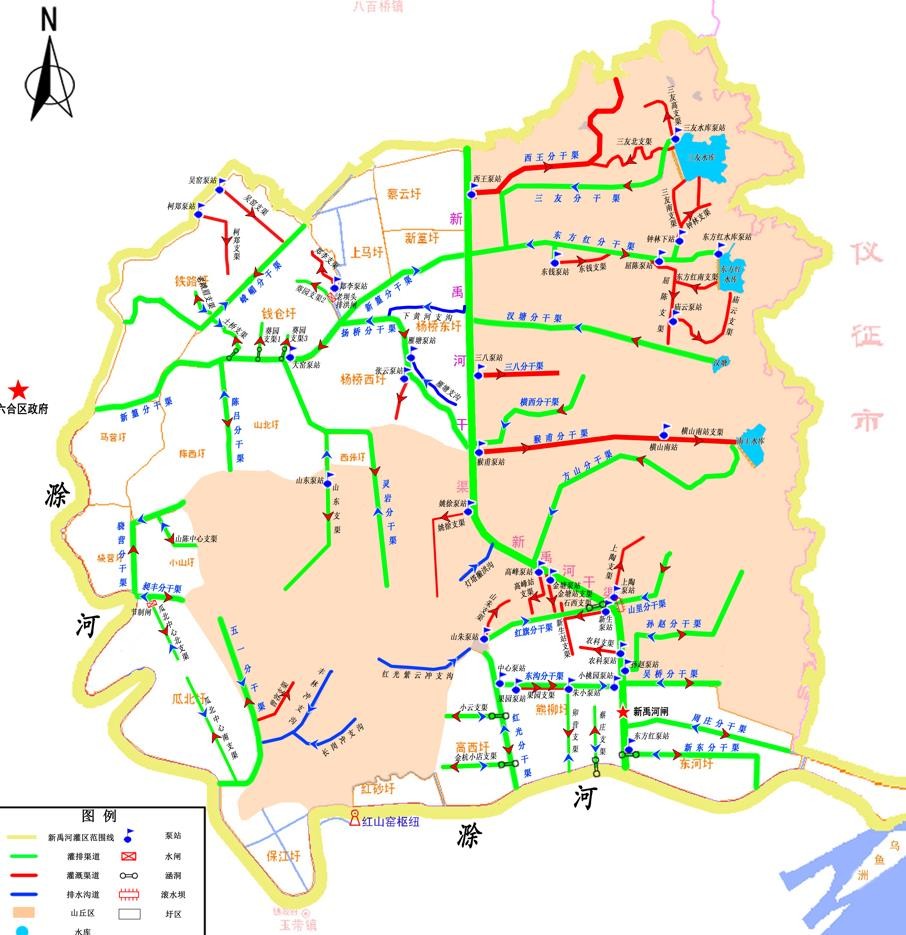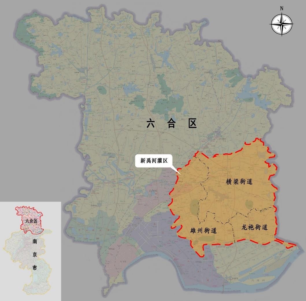 新禹河灌區位于江蘇省西南部,濱江帶滁。新禹河作為滁河支流串聯起雄州、橫梁、龍袍3個街道大片區域,總面積264.47平方公里,設計灌溉面積16.0萬畝,其中高標準農田面積12.59萬畝,屬典型南方多水源平原丘陵蓄引提結合“長藤結瓜”式的重點中型灌區。