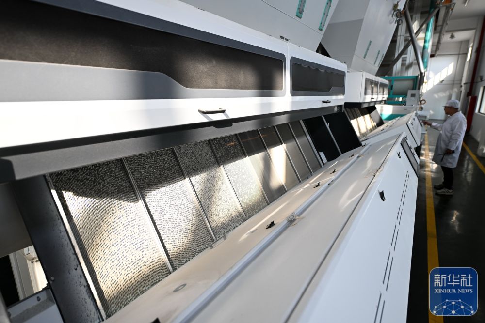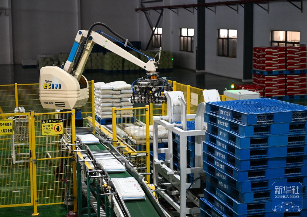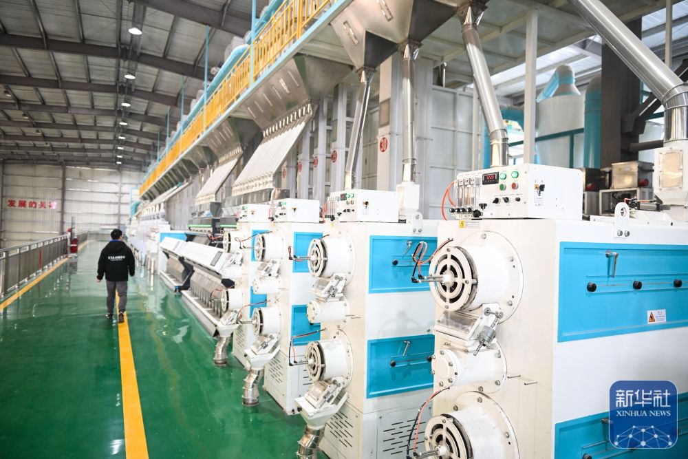 這是位于射陽縣的江蘇必新大米集團自動化加工車間(10月30日攝)。