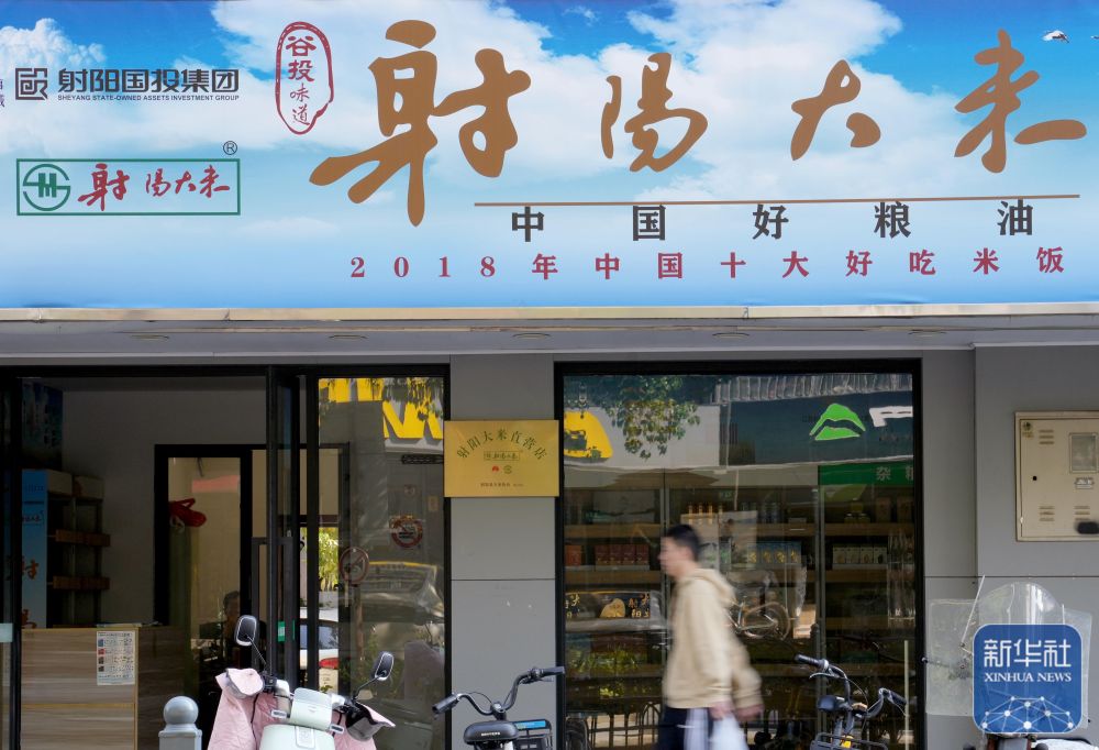 這是位于上海閔行區的射陽大米旗艦店外觀(11月11日攝)。