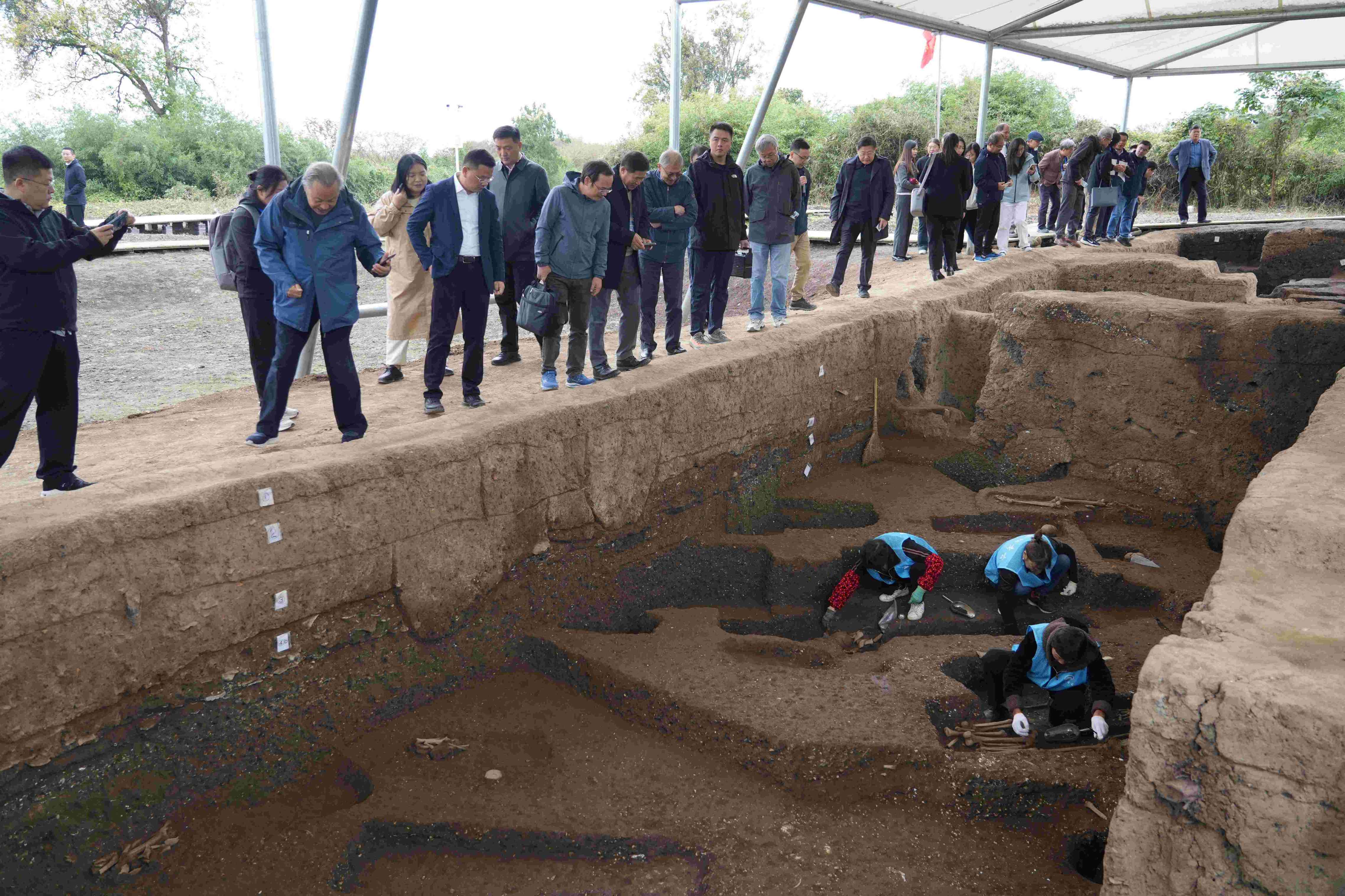 11月18日,33名來自中國社會科學院考古研究所、中國科學院古脊椎所、長三角地區部分省市的考古學家、青年考古學者齊聚常州金壇,參觀三星村遺址二次考古發掘現場。三星村遺址位于常州市金壇區三星村,是長江下游一處十分重要的新石器時代文化遺址,對中華文明起源、農業起源等重大課題研究具有十分重要的意義。1993年至1998年,三星村遺址進行了首次發掘,出土文物4000余件,入選“1998年全國十大考古新發現”。2006年,三星村遺址被列為全國重點文物保護單位。2023年,三星村遺址啟動第二次考古發掘。(孫姝穎 席航飛)