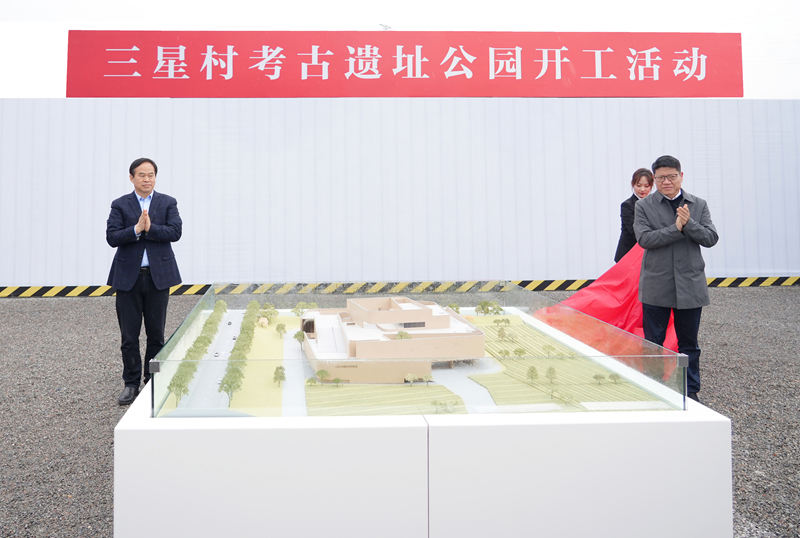 江蘇省文旅廳黨組成員、副廳長,省文物局局長,南京博物院黨委書記拾峰,常州市委常委、秘書長杭勇共同為三星村遺址博物館模型揭幕。
