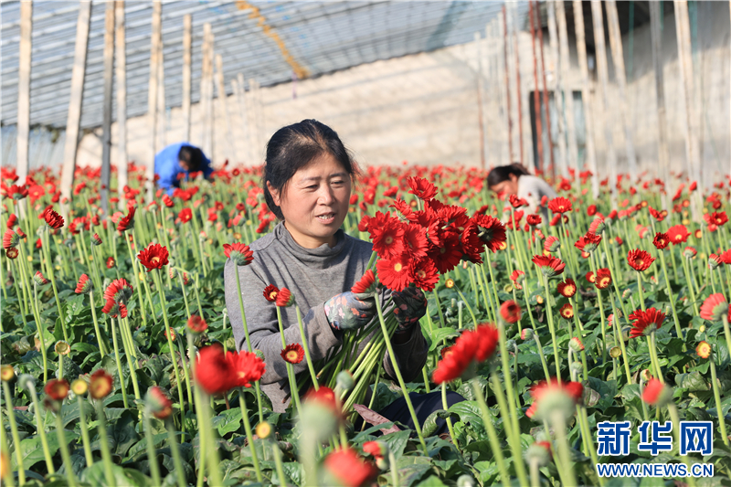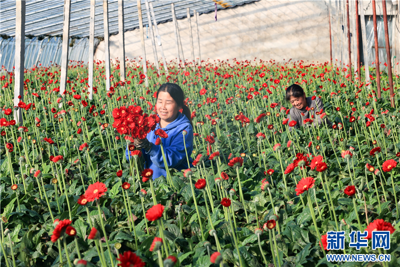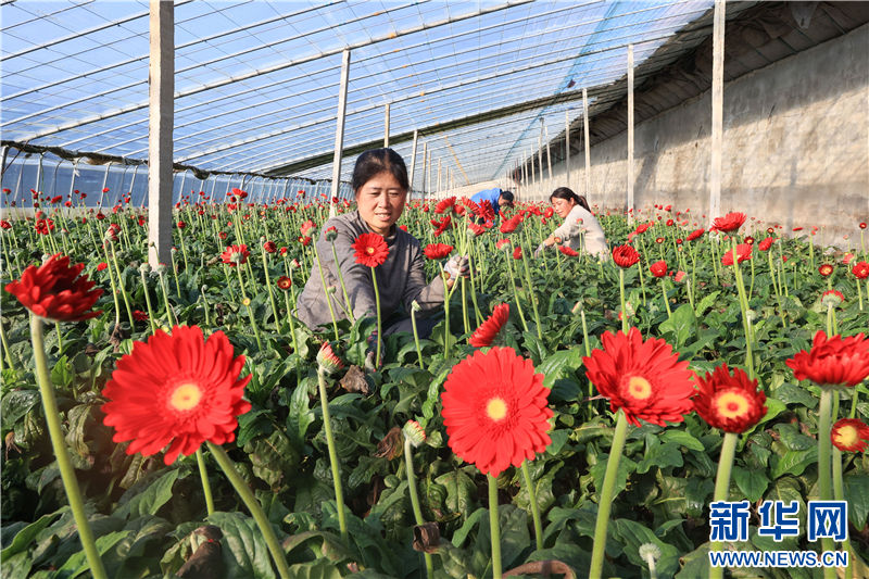11月28日,花農在江蘇省連云港市贛榆區金山鎮趙湖村采摘非洲菊鮮切花。