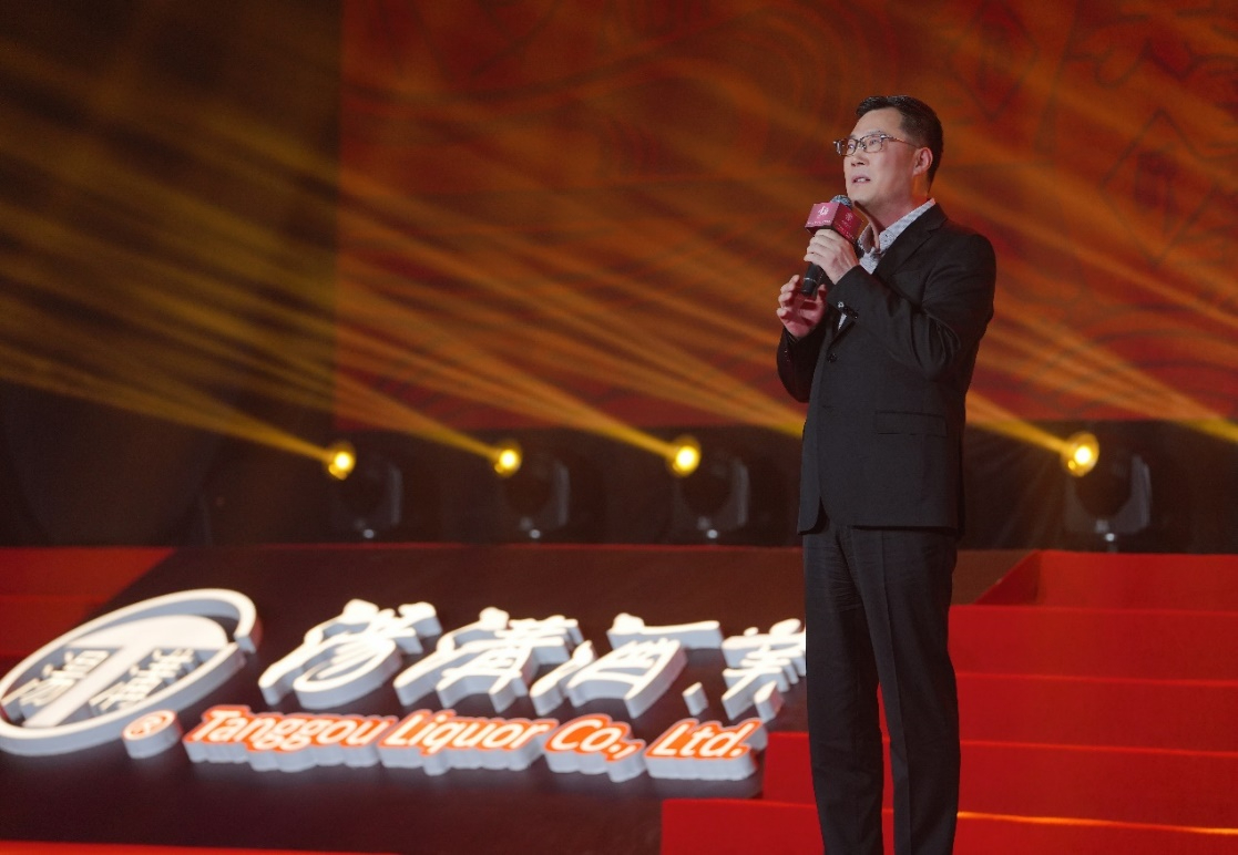中國酒業協會副秘書長劉振國、中國酒類流通協會副秘書長邢春雷,灌南縣人民政府縣長高站分別致辭。江蘇湯溝兩相和酒業有限公司黨委書記、董事長朱耀匯作《天選湯溝 此醉中國》主題演講。
