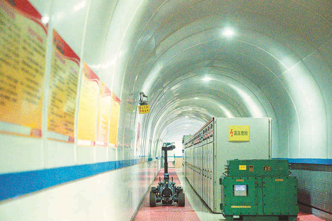 在地下“電力倉庫”——中央泵房變電所內,一臺智能巡檢機器人來回穿梭,將機柜的實時數據傳送到地面。