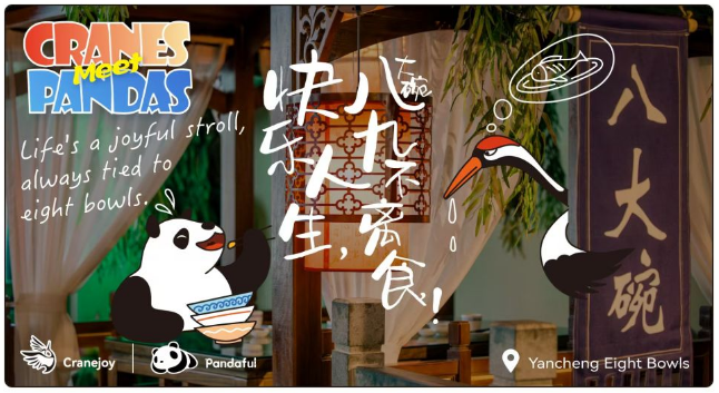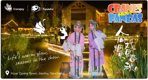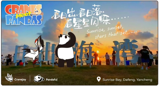 2024年10月12日起,“發現鹽城”(Discover Yancheng)海媒賬號在Facebook、X、Instagram、YouTube、Tik Tok平臺同步發起“Cranes Meet Pandas”(丹頂鶴遇上大熊貓)全球傳遞活動,通過建立動物大使身份證/MBTI檔案,創作熊貓的生日派對海報、跨界游記海報、“CP奇遇記”漫畫,展開跟著海外博主參與丹頂鶴&熊貓保護活動等系列創意策劃,邀約全球網友一起探索鹽城的生態與文化魅力,與各大城市地標互訪,搭建起全球動物間友誼的橋梁,串聯起全球“生態圈”。(鹽軒)