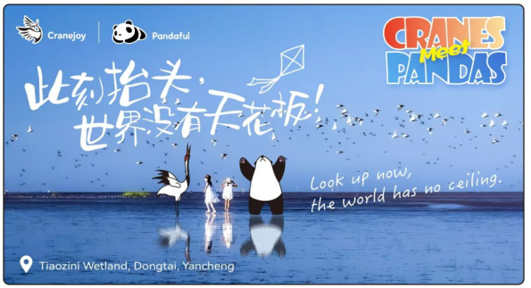 實景拍攝+涂鴉插畫,演繹丹頂鶴和熊貓的“CP奇遇記”!“Cranes Meet Pandas”(丹頂鶴遇上大熊貓)海媒全球傳遞活動邀您跟隨丹頂鶴和熊貓,一起打卡鹽城。