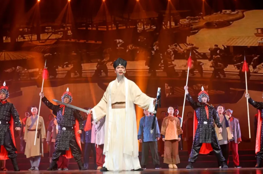 在隨后的演出中,來自全市各地的文藝工作者和學校師生代表,通過淮劇、交響詩舞、歌曲、微短劇、京歌等表現方式,展現了范仲淹的憂樂思想、家國情懷、高潔品質,以藝術的手法傳頌范公跨越千年的偉大情懷。