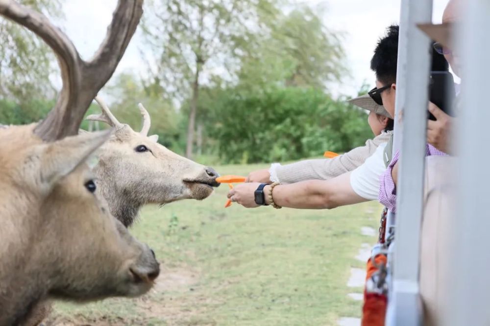 在這里,麋鹿悠閑地在草地上覓食、嬉戲。游客們乘坐觀光車或步行游覽,近距離接觸這些可愛的麋鹿,感受它們帶來的歡樂與驚喜。