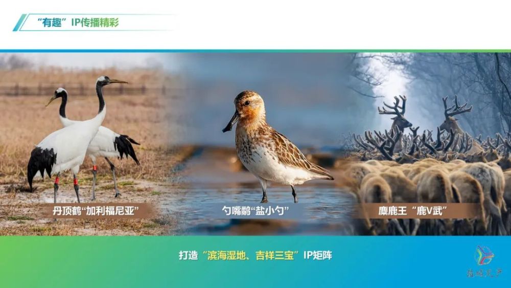 鹽城打造“濱海濕地、吉祥三寶”IP矩陣,講好丹頂鶴“加利福尼亞”、勺嘴鷸“鹽小勺”、麋鹿王“鹿V武”的生動故事。