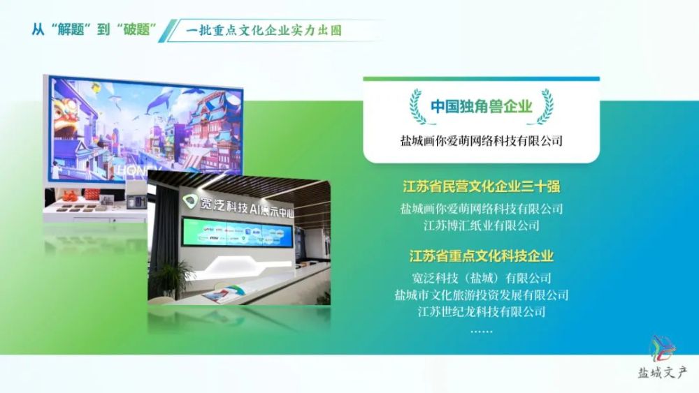 全市現有規上文化企業661家,十四五以來年均增幅超23%。出臺一批文化產業扶持政策,20多家文化企業分獲中國獨角獸企業、江蘇省民營文化企業30強、江蘇省重點文化科技企業等榮譽。