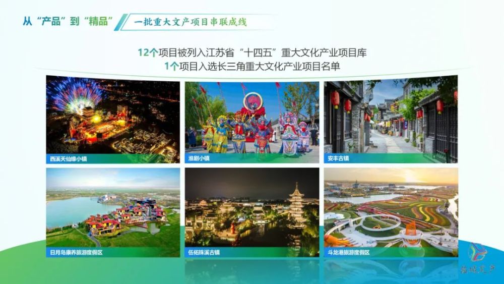 淮劇小鎮等12個項目列入江蘇省“十四五”重大文化產業項目庫,1個項目入選長三角重大文化產業項目名單。持續推進“串場河海鹽歷史文化長廊”“濕地鹽城·生態文旅融合示范帶”建設。
