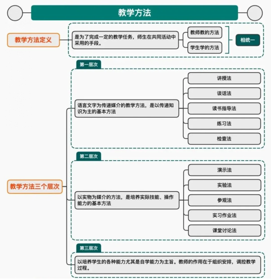 教學方法,是為了完成一定的教學任務,師生在共同活動中采用的手段。既包括教師教的方法,也包括學生學的方法,是教的方法和學的方法的統一。分為三個層次: