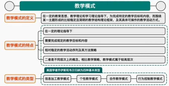 教學模式,是在一定的教育思想、教學理論和學習理論指導下,為完成特定的教學目標和內容,而圍繞某一主題形成的比較穩定且簡明的教學結構理論框架,及其具體可操作的教學活動方式。