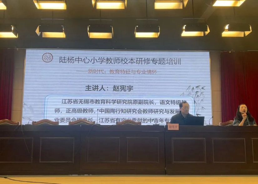 近日,昆山市陸楊中心小學特邀無錫市教育科學研究院原副院長、語文特級教師、正高級教師趙憲宇教授蒞臨并做題為《新時代:教育特征與專業情懷》的專題培訓。本次培訓由陸楊中心小學教科室胡穎主任主持。