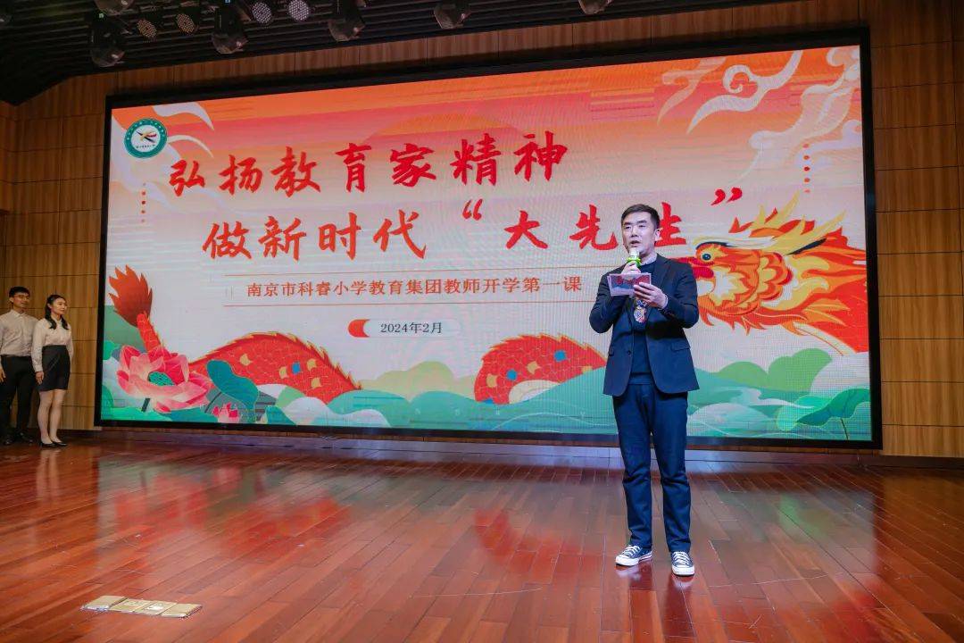 科睿小學教育集團舉行新學期第一次活動,科睿小學、馬臺街小學和南大附屬丁家橋小學的教師們齊聚科睿園,共同聆聽主題為“弘揚教育家精神,做新時代‘大先生’”的教師開學第一課。原國家督學、教育部課程改革專家成尚榮先生和國家教育部教材局、教育部基礎教育教學指導專家柳夕浪先生,為大家帶來精彩講座……