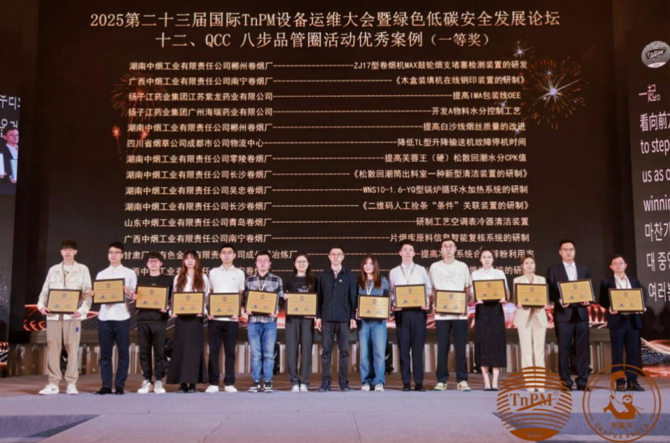 在本屆大會上,揚子江藥業集團有限公司獲評TnPM設備管理標桿企業(流程型制造行業),8名員工被評為TnPM優秀設備工匠。在大會的優秀案例及改善活動案例評選中,集團《制劑包裝線TnPM活動引領的持續改善之路》《提高IMA包裝線OEE》《開發A物料水分控制工藝》等多項課題成果從全球數百家參評企業中脫穎而出,獲得團體榮譽16項。