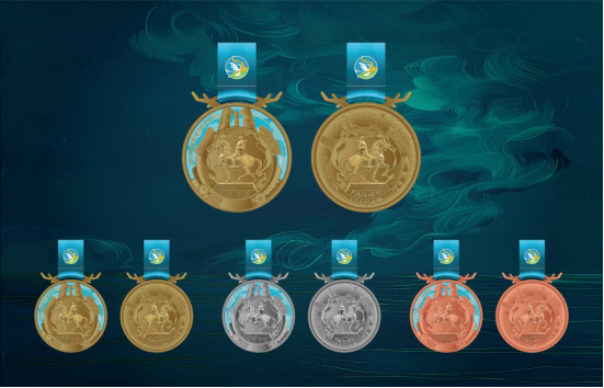 獎牌設計靈感源自鹽城“四色文化”,以標志性建筑大銅馬為核心,環繞新四軍紀念館、文化藝術中心等地標建筑,并以“海浪”波紋裝飾,融入鹽城麋鹿鹿角元素。