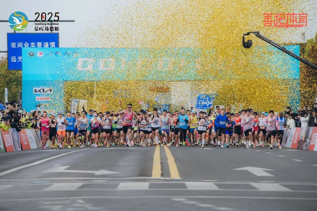 隨著發令槍響,浩浩蕩蕩的奔跑隊伍如潮水般涌過起點拱門,“我愛鹽城!”的吶喊聲此起彼伏、響徹天際。賽道沿線,熱情的市民用太極拳、扇舞、啦啦操等特色表演,為選手們加油鼓勁,整座城市都沉浸在歡樂與激情的氛圍之中。