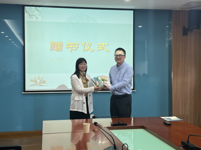 接著,陳興宇向受贈學校代表邱麗華校長贈送了一批精心挑選的圖書。