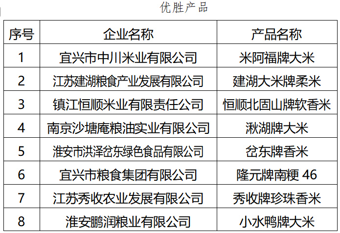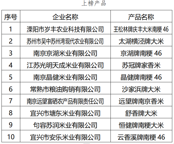 此次獲獎榜單上,眾多優質產品脫穎而出。獲得“上榜產品”的有溧陽市歲豐農業科技有限公司的王松林牌慶豐大米南粳46、蘇州市吳中蘇州灣現代農業有限公司的太湖橫涇牌大米等10款產品。榮獲“優勝產品”的包括宜興市中川米業有限公司的米阿福牌大米、江蘇建湖糧食產業發展有限公司的建湖大米牌柔米等20款產品。這些獲獎企業來自江蘇各地,其產品各具特色,代表了江蘇稻米的高品質水準。
