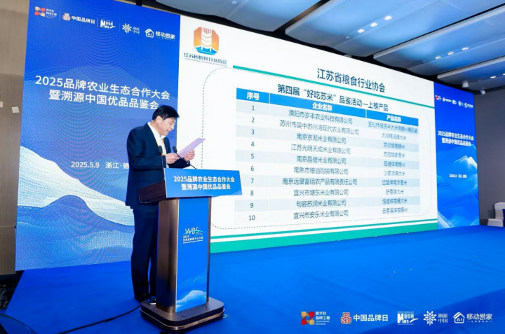 5月9日,在浙江德清舉辦的2025品牌農業生態合作大會暨溯源中國優品品鑒會上,備受矚目的第四屆“好吃蘇米”品鑒活動結果正式公布。此次品鑒活動由江蘇省糧食行業協會牽頭舉辦,旨在借助科學嚴謹的評選流程,挖掘江蘇優質稻米產品,推動“水韻蘇米”省域公用品牌建設,進而推動糧食產業實現高質量發展?;顒蝇F場,江蘇省糧食行業協會常務副會長施啟平發布品鑒結果。