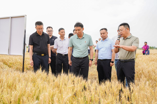 在周莊鎮殷莊村兔根家庭農場“寧紅麥1119”試驗示范基地,金色的麥浪翻滾起伏,勾勒出一幅豐收在望的壯美畫卷。來自周莊鎮各村(社區)的種植大戶們實地參觀“寧紅麥1119”試驗示范情況,仔細查看小麥生長態勢、抗逆性以及產量表現等關鍵指標,聽取紅旗種業公司和蘇中農業公司關于“寧紅麥1119”品種優勢以及農技農資配套服務情況的介紹,詳細了解“全程農技服務訂單農業”運行模式。