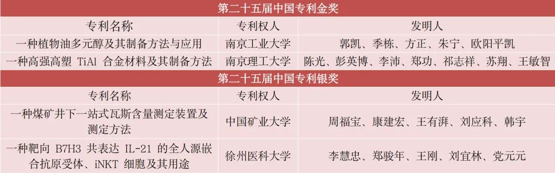 附:第二十五屆中國專利獎金獎、銀獎項目名單(江蘇高校)