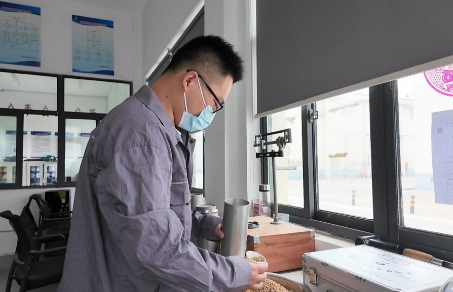 在檢驗室,江威正專注操作著近紅外谷物分析儀?!敖衲陥绦械氖亲顕罉藴剩核帧?3%、容重≥770克/升、雜質≤1%、嘔吐毒素≤1000μg/kg?!彼呎f邊展示檢測流程,“每車糧食要過‘三道關’——扦樣機隨機取樣、快速檢測儀初篩、實驗室復檢,任何指標不達標立即退車?!睘槭刈o“舌尖上的安全”,糧庫糧庫嚴格執行國家標準,對入庫小麥進行嚴格檢驗。 為應對夏糧收購高峰,劉莊糧庫提前三個月啟動倉容騰并工作,7300噸標準化倉房整裝待發。同時,優化收購流程,加班加點提供服務,糧食充足的情況下每天可收購1400-1500噸小麥。