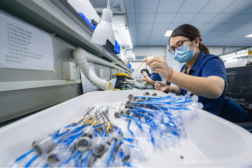 盛夏時節,走進高淳區企業南京德文醫學科技有限公司的無菌生產車間,自動化設備高效運轉,技術人員正全神貫注地檢測一批即將發往海外的微波消融針產品?!斑@是我們自主研發的治療肺結節專用的一次性微波消融針,今年2月剛拿到注冊證,填補了國內空白?!惫鞠嚓P負責人介紹,這款消融針能在CT引導下穿刺到病灶中心,通過針尖微波天線產生的熱效應將病灶徹底“燒灼”和消融,達到創口更小、恢復更快的效果。