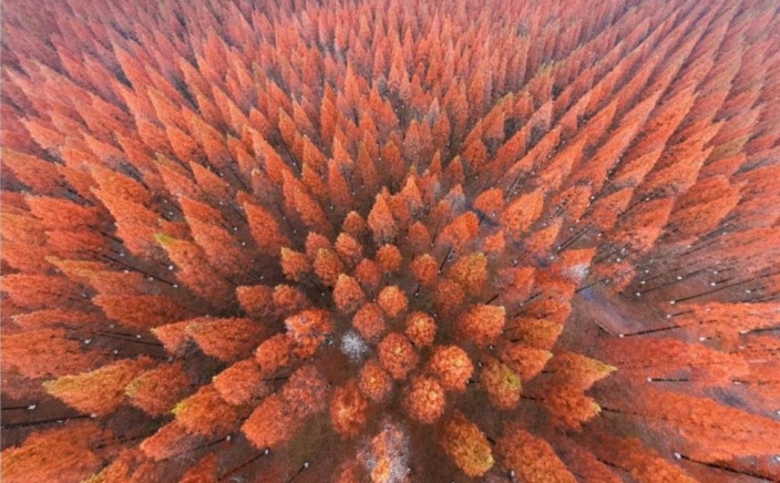 東臺黃海國家森林公園萬余畝水杉林層林盡染,陸潤卿攝