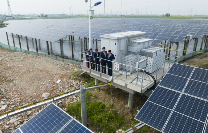 在江蘇宜興的楊巷鎮,漁民們正劃著小船穿梭在魚塘水面上。與往年不同的是,他們的頭頂不再是灼人的烈日,而是一片片湛藍色的光伏板矩陣,玻璃蓋板倒映在如鏡的水面上,勾勒出綠色鄉村的科技圖景。